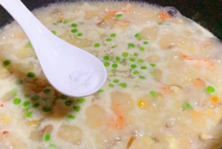 9.加适量盐拌匀调味,煮至粥水粘稠