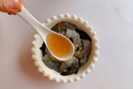 2.将虾仁加入1勺料酒和适量胡椒粉