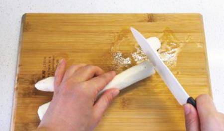 2.把食材切好备用,虾头不要丢,虾仁切丁,然后加入料酒和姜片