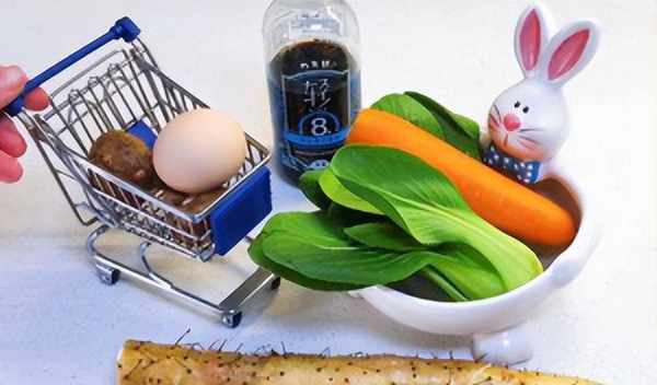 用料:山药1根,油菜2棵,胡萝卜半根,香菇3朵,鸡蛋1个,轻盐酱油半勺,香油1勺