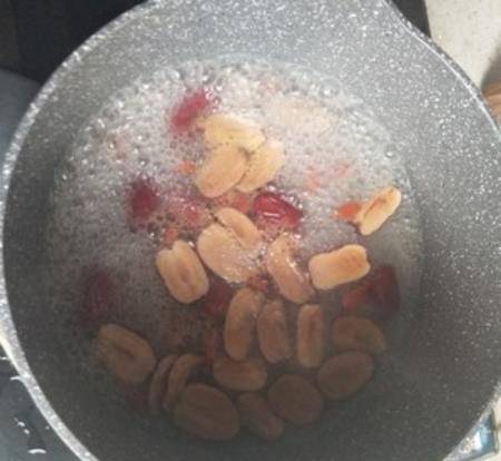 3.锅内加入少量清水加入红枣枸杞煮开。