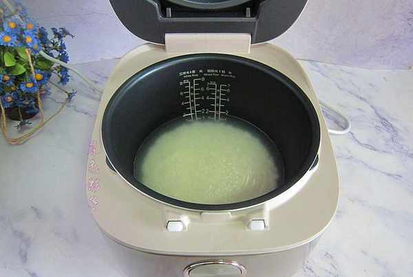 步骤;1,大米淘洗到水清即可,把米倒入电饭煲内,按着刻度加水。