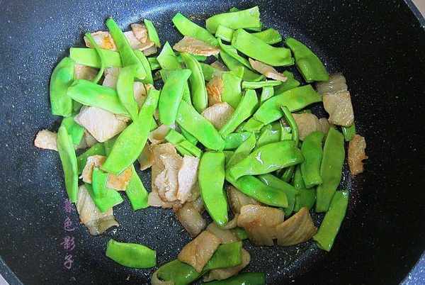 2,热油炒肉片,加1勺料酒去除肉的腥腻味,肉片翻炒出香味,再把扁豆角下锅翻炒变色盛出来。豆角有丰富的维生素B和维生素C和植物蛋白质,能够使人头脑清晰,益气生津。在夏天要多吃一些豆角可以有效消暑,并起到青口的作用。