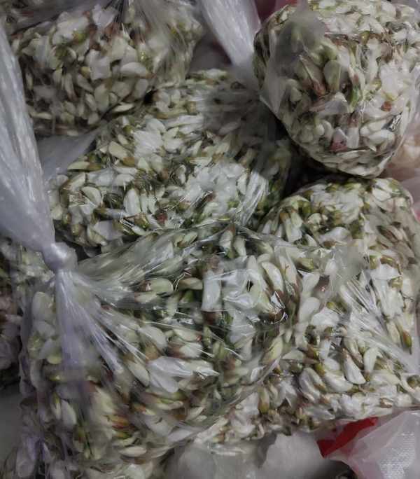 昨日吃的槐花鸡蛋饼,今早换换口味吃——蒸槐花!市场上的槐花刚上市非常新鲜有一半是“含苞欲放”的花骨朵,口感最佳!价格不菲10元/斤,多买了点清水洗净晾干!