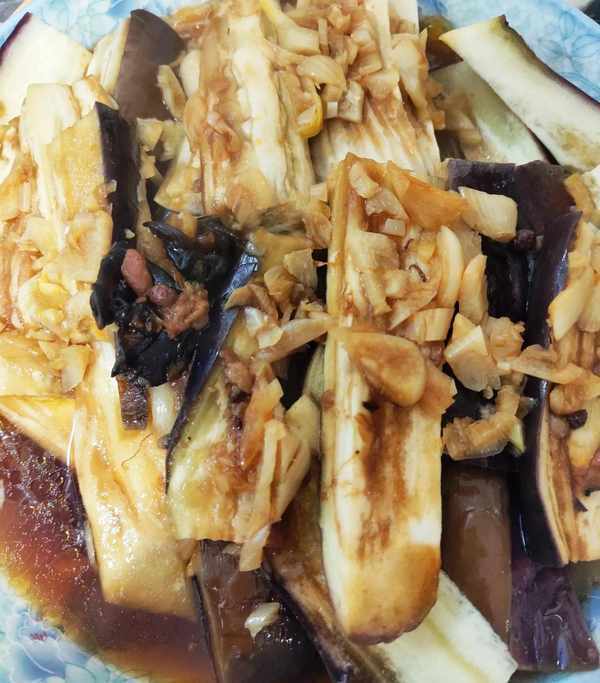 蒜末、盐、生抽、耗油、花椒油、辣椒油少许调成料汁,浇在茄子上,大火整8分钟即可![舔屏]