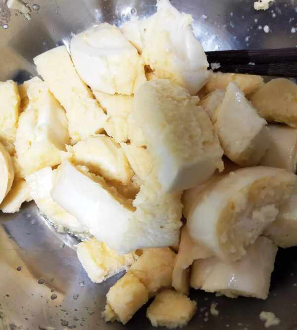 煎炒馒头条,馒头切成手指粗细的长条。鸡蛋2个加水盐少许打匀,使馒头条充分沾满蛋液!