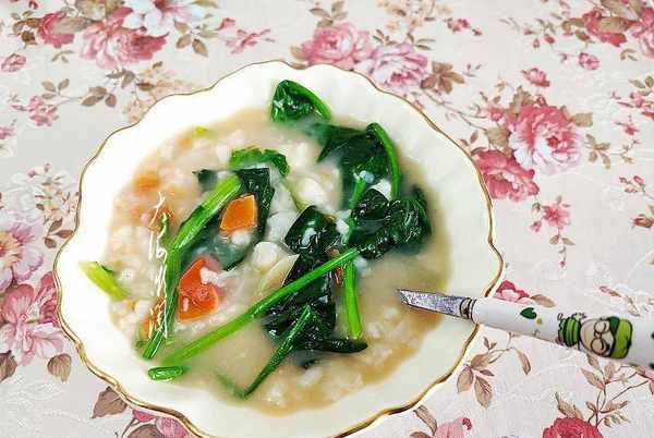 【蔬菜疙瘩汤】所需食材:面粉100克;西红柿1个;菠菜1把;油适量;盐适量;五香粉适量;胡椒粉适量;葱适量;生抽适量。