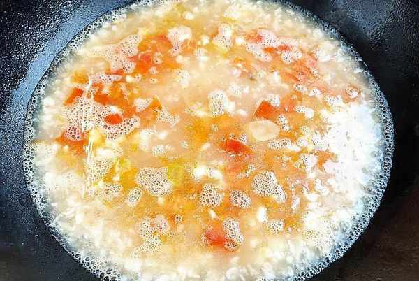 加入适量的水,大火烧开,水开后加入面疙瘩迅速滑散,搅拌均匀,避免形成大疙瘩,继续煮开。