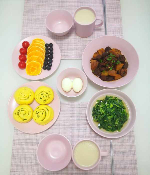 昨天做的烧饼还剩点油酥,放置时间长了担心会新,看到家里有南瓜,做道南瓜葱花卷吧,做法简单还省事,按照我的习惯,做面食总少不了来点杂粮面,增加膳食纤维、增加饱腹感,对健康和保持体形都很有帮助,搭配两道家常荤素,早餐吃好,一整天都能量满满!