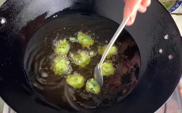 注意要点:油温不要太高,太高油温炸出来的丸子不绿了。丸子下锅不要着急搅动,等丸子定型后,用勺子轻推搅动,这样做丸子不易散。