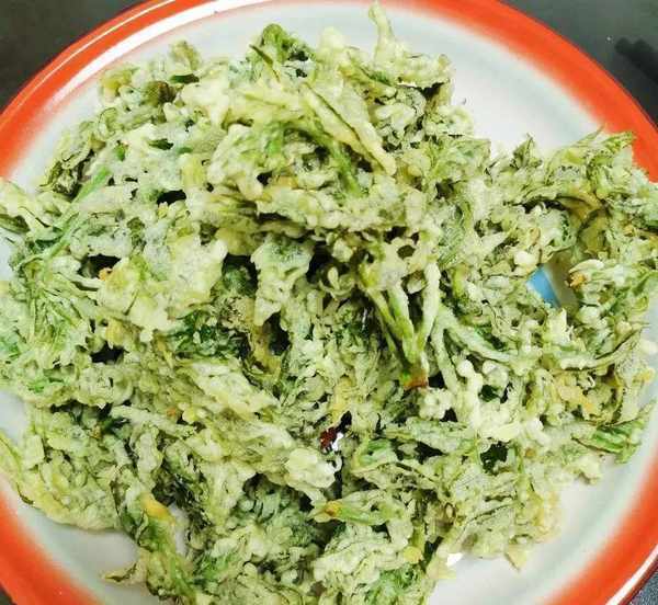 注意:花椒芽比较美,炸的时间不要过长;面糊不可太稠。