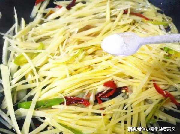 有些人在把土豆丝放进锅里烤之前先把它们焯一下。其实这个方法是错误的。土豆泥很容易自己煮。热烫后,它们已经烤好了。如果用平底锅煎的话,就很难入味了,而且焯水后炸出来的薯片一点都不脆。所以大家,如果你在烤土豆丝,你不应该把它们焯一下。只需将土豆丁泡一下,去掉多余的淀粉,土豆丁就会香脆可口,不粘锅。