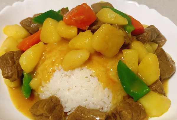 色香味完全在线的咖喱牛肉就好了,盛出盖到香喷喷的白米饭上就可以开吃了。