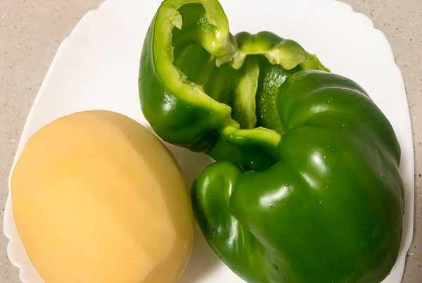 牛肉切、土豆、胡萝卜、彩椒切成小块。