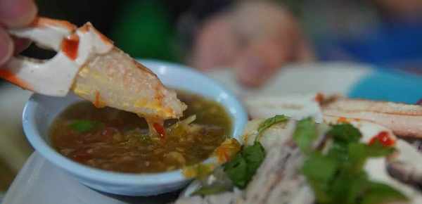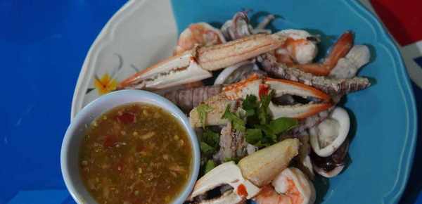 除了面,我还单点了一份海鲜,配泰式酸辣蘸酱。