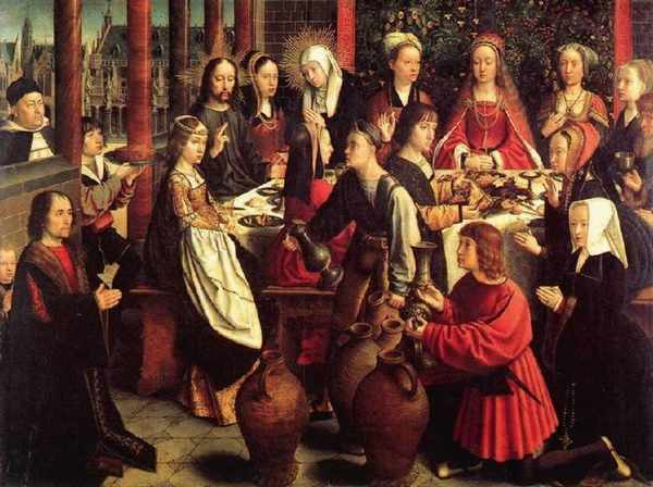 在杰拉德·大卫(Gerard David)这幅描绘一场婚宴的画作当中,仆人端上了一块蛋糕,切肉师则正在餐桌前切肉。