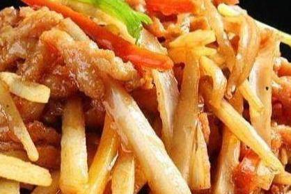 5、锅中再倒入少许油,放入葱片、姜片和木瓜椒爆香,再放入莲藕片,加一勺白醋炒香;加入黑蘑菇和盐,翻炒几下,最后倒入炒好的肉丝,翻炒均匀,出锅装盘。