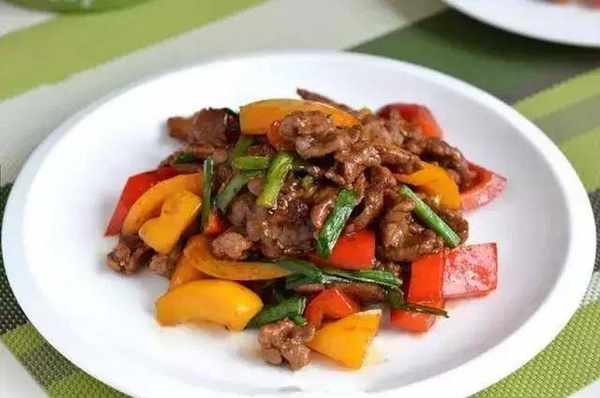 材料:牛肉、尖椒、彩椒、油盐葱姜蒜、蚝油、鸡精