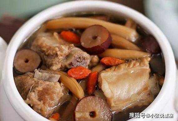 6.将红枣、枸杞、黄花菜捞出,放入锅中用大火烧开,转小火煮40分钟。