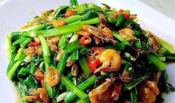 材料小河虾200克,韭菜200克,小米椒、姜少许适量,蒜少许,盐少许,花生油适量