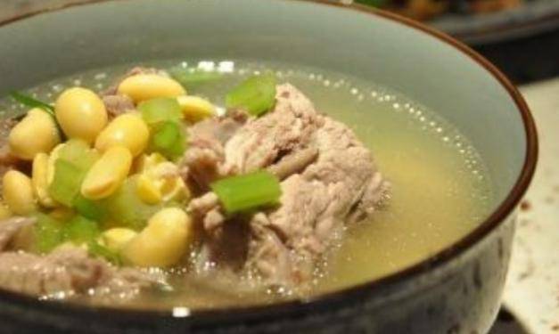 1.黄豆提前半天浸泡,骨头洗净放入锅中,加料酒加水、葱姜大火煮熟