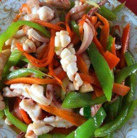 材料:大蒜、生姜、章鱼、青椒、胡萝卜