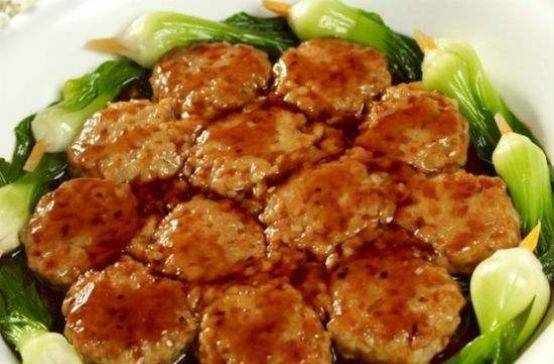 10、再加入变性淀粉汁,炒至浓稠时,加入炸好的丸子,鸡粉翻炒出锅。