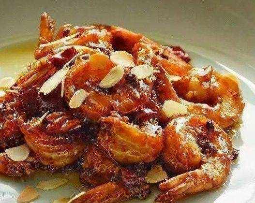 原料:虾球250克,烤杏仁片10克,糯米粉1500克,生粉1500克,一号面粉1500克,炸白味加香泡打粉400克,粉100克,白鹤嘴皮面200克,干辣椒10克,大红袍3克,花椒10克,姜10克,蒜末10份,川香宫保汁70克,美极鲜辣炒50克-炸酱、美极番茄辣椒酱、意大利黑醋200克、白糖180克、生抽20克、老抽10克