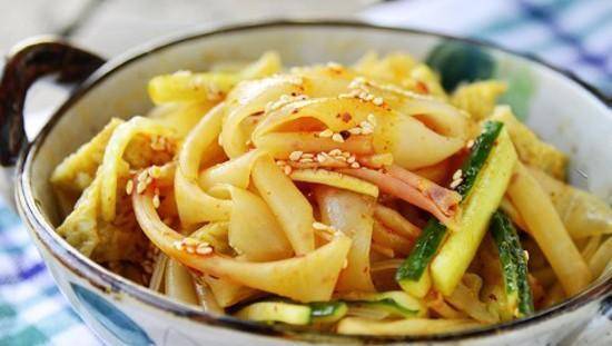 原料:面粉300克,黄瓜适量,盐适量,谷氨酸钠适量,辣椒油适量。