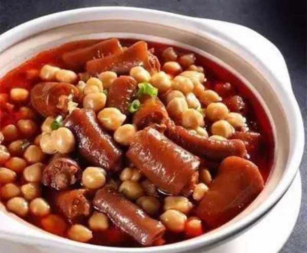 做法:1、猪尾入川卤锅炖熟,捞出切小块;将鹰嘴豆放入新鲜的汤锅中,用文火煮至熟透。