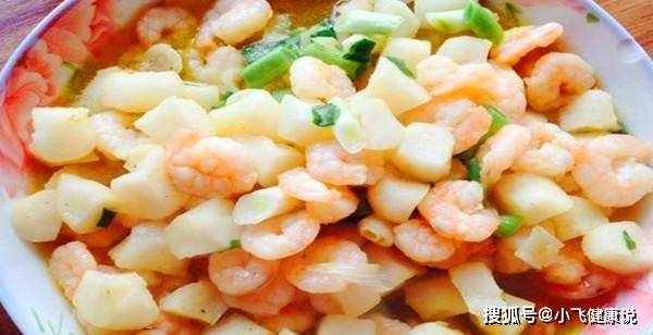 3.起锅烧油,油烧至四成热,下入虾仁滑散至熟,捞出盛入碗内。起锅烧油,下入荸荠丁、虾仁翻炒均匀,加盐、味精、香油、水淀粉勾芡汁,出锅装盘即可。
