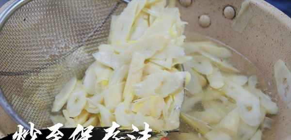 这个需要将春笋刨皮了,打开春笋的皮就看到春笋内部是有多美了!根部的颜色都是呈美绿色,顶端细细的根一掐就出水。这样的春笋问谁人不爱呢?春笋斜切成片,不要切太薄。起锅烧水,将春笋倒入锅中翻炒,并放入食用盐。焯水2分钟后,盖上盖子焖煮1分钟后,下铲捞捞就可以过水出锅了。把煮熟的笋放入保鲜袋中,把保鲜袋内部的空气排出,就可以扎口了,然后放进冰箱冷藏室中保存,可以保存一年的时间呢!