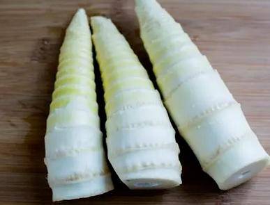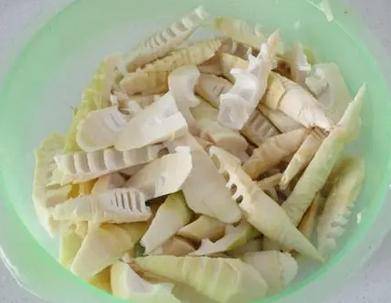 2、春笋处理干净后,事先放入在淡盐水中浸泡一会,既能帮助去除其中的苦味,而且还可使其更加干净卫生,吃着也会更加放心;