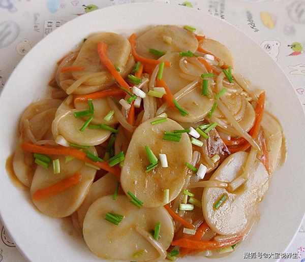 【食材】年糕适量,豆芽少许,胡萝卜1根,香葱,盐1小勺,料酒1勺,白糖,酱油适量