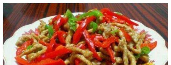 5.如果锅里的油不够,再加点油。油热后,加入大蒜、姜、胡椒粉,然后加入磨碎的辣椒。炒至辣椒半熟,加入适量盐,然后将肉丝倒入盘中,翻炒3-4分钟,即可出锅。