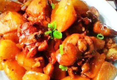 2、鸡腿用刀切块,土豆切块用清水洗净去星,以免土豆氧化变黑;3、锅内加水,鸡块用冷水焯一下,水开后用大火煮4-5分钟,去浮粉备用;
