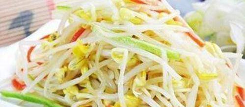 配料:豆芽200克、干香菇1个、胡萝卜20克、黄瓜30克、花椒1个、生姜20克、盐1/4茶匙、白糖1/2茶匙、白糖1/4茶匙.醋
