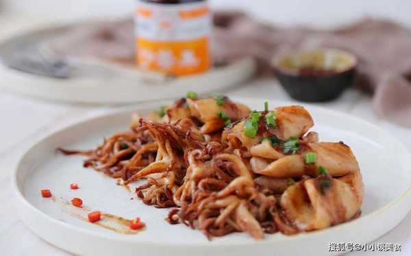 配料:鲜鱿鱼600克,沙茶酱2汤匙,酱油8克,姜茸2克,蒜茸2克,胡椒粉少许,葱花少许