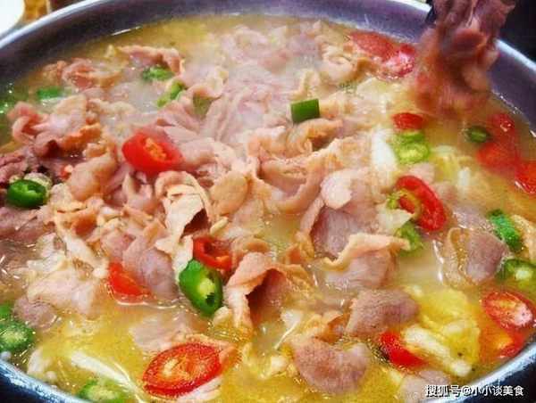 3.将肥牛肉放入沸腾的汤中煮至变色