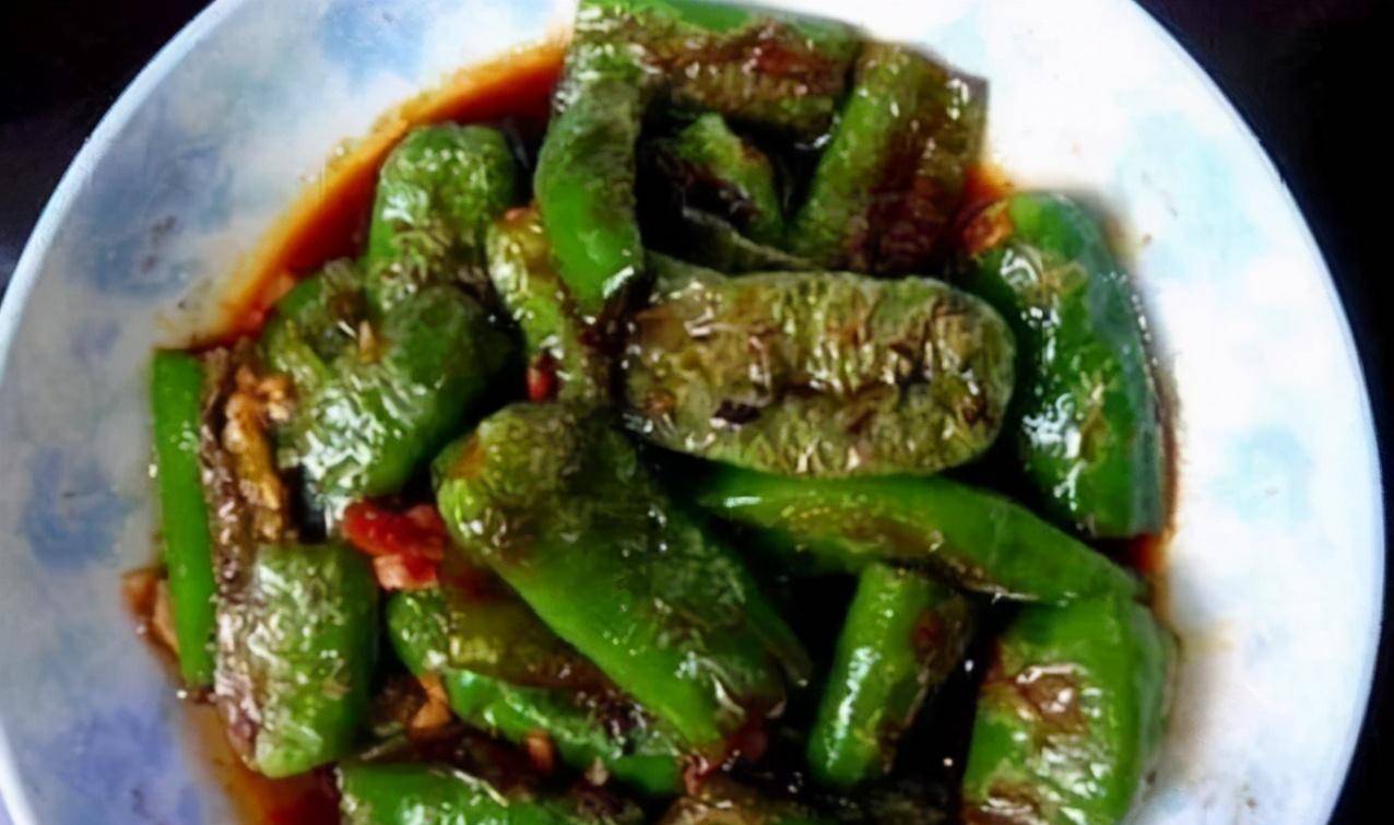 材料:青椒300克、蒜末、食用油100毫升、生抽1勺、甜酒1勺、盐1元。