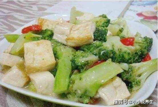3.将西兰花放入沸水中焯一下,捞出沥干水分。4.锅里放油烧热,将姜片和红辣椒炒香,下入西兰花和豆腐,翻炒几下,加盐、胡椒粉和香菇精调味即可起锅。