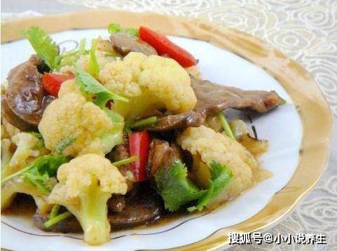 配料:花椰菜;肝尖;辣椒;香菜;洋葱;姜;蒜;盐;酱油;料酒;鸡汁;水淀粉