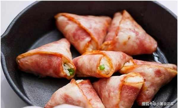3、培根切方块,锅中倒入适量的油,煎至软!