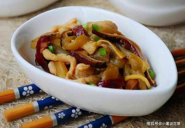 1、将瘦肉洗净,切成细丝;干香菇泡水,去蒂,挤干水分,切丝;红枣泡水,去核,切丝;将生姜去皮并切成纤维状