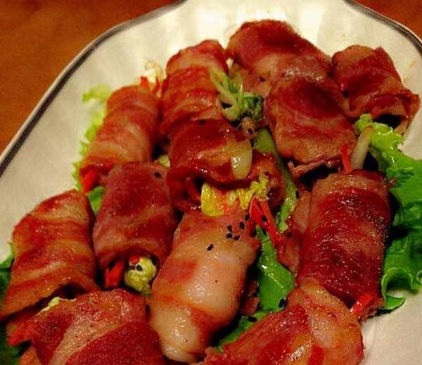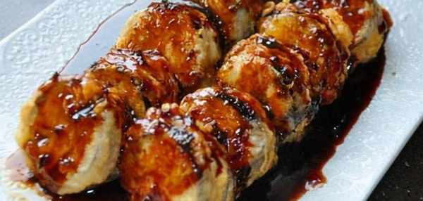 3.锅里开火,倒入油,油热后放入猪肉卷,炸至猪肉呈金黄色,取出牙签(8分钟)。