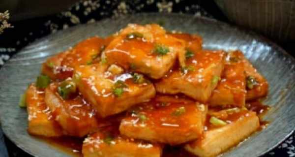 配料:豆腐、白糖、醋、生抽、番茄酱、盐、水淀粉、煮熟的芝麻、小葱碎;