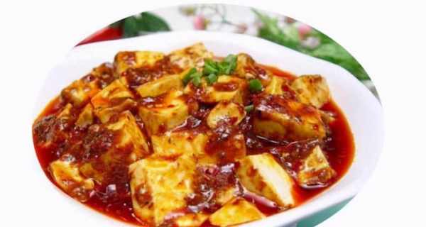 2、加适量水,烧开后加入豆腐片、酱油、糖煮3分钟。然后用淀粉勾芡,倒入盘中。烧热芝麻油,爆香辣椒,将花椒洒在豆腐上。