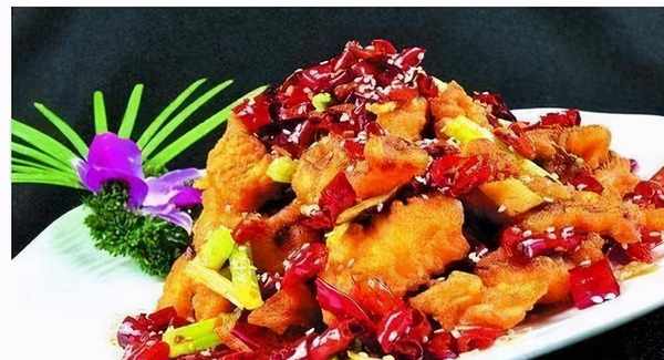 1、将鸡肉用盐和料酒腌制;锅内倒入比平时多两倍的油,将辣椒和花椒用小火炒至变色,捞出备用。