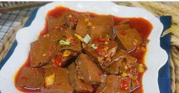 材料:猪血300克,豆瓣酱3勺,葱姜蒜各适量