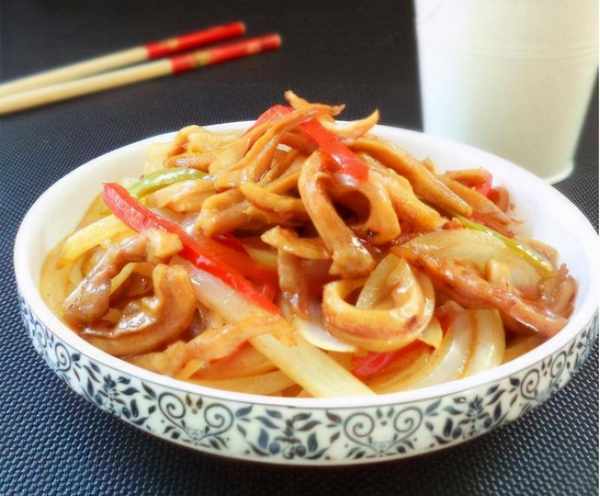 原料:熟牛肉饼、洋葱、干辣椒、色拉油、鲜美极